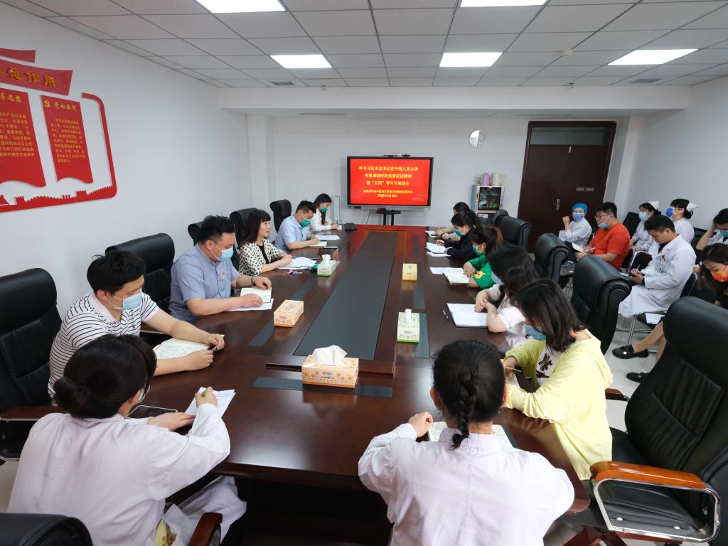 本网讯(文/郭承 图/田辉)在五四青年节即将到来之际,中共中央总书记、国家主席、中央军委主席习近平到中国人民大学考察调研。习近平总书记在中国人民大学考察时的重要讲话对青年提出了新的要求与希望,在三附院广大青年当中引发强烈反响。为深入学习贯彻落实习近平总书记重要讲话精神,汇聚起干事创业的强大动力,2022年4月26日上午,三附院第一时间组织召开了学习习近平总书记在中国人民大学考察时的重要讲话精神暨“五四”青年节座谈会。三附院党委副书记焦钧、青年医师、教师、学生工作者及团员代表参加学习座谈。