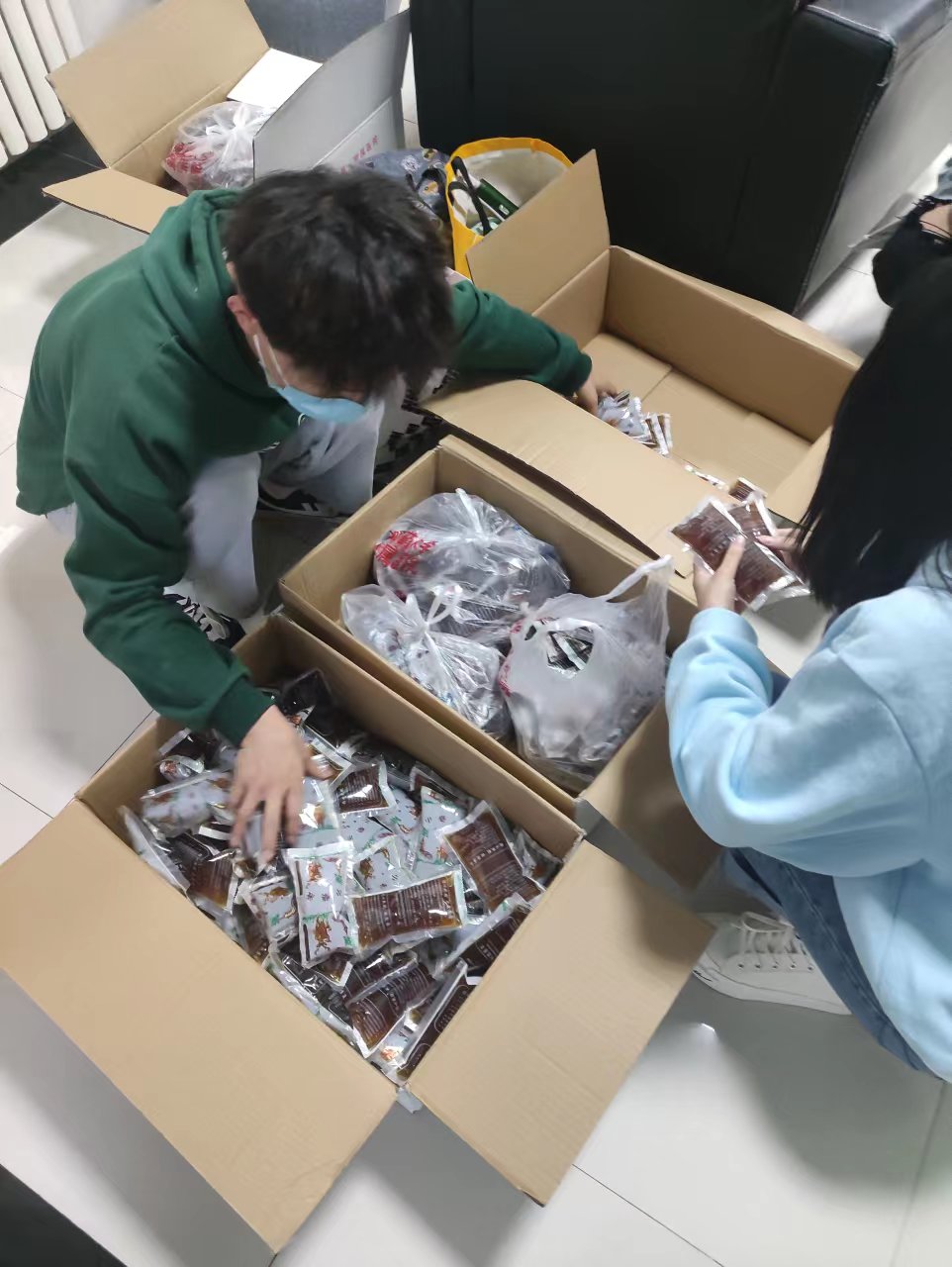 社区志愿者发放中药包