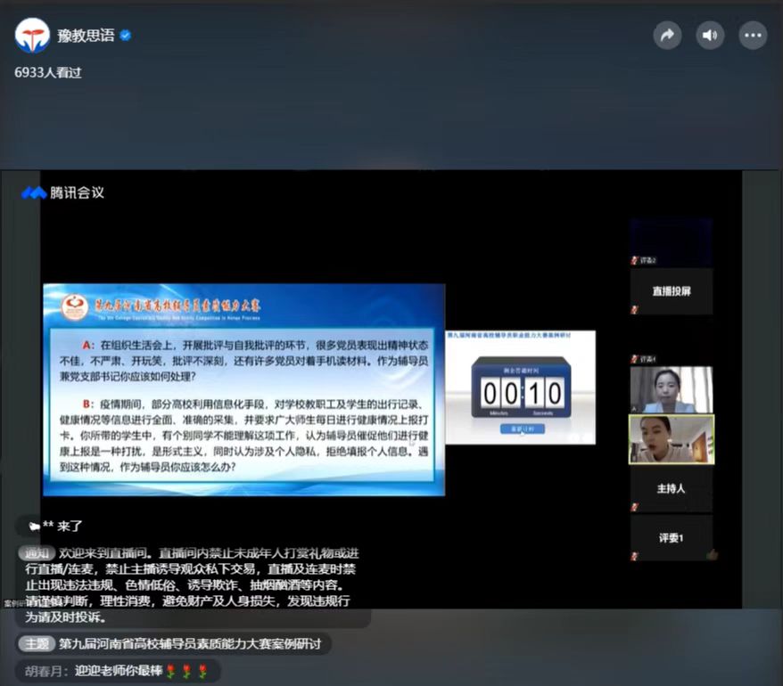 本次大赛在全国疫情防控背景下,克服重重困难后顺利举行。大赛首次采用线上线下相结合的方式进行,分为初赛、复赛和决赛三个环节,包括基础知识测试、案例研讨、谈心谈话三个比赛项目,综合考察参赛辅导员的理论素养、思想教育能力、语言表达能力、逻辑思维能力、问题解决能力、个人综合素质等多方面的知识和技能。克迎迎以扎实广博的知识储备、昂扬向上的精神风貌获得了大赛一等奖,充分展示了米兰(中国)辅导员的能力和风采,也为学校争得了荣誉。