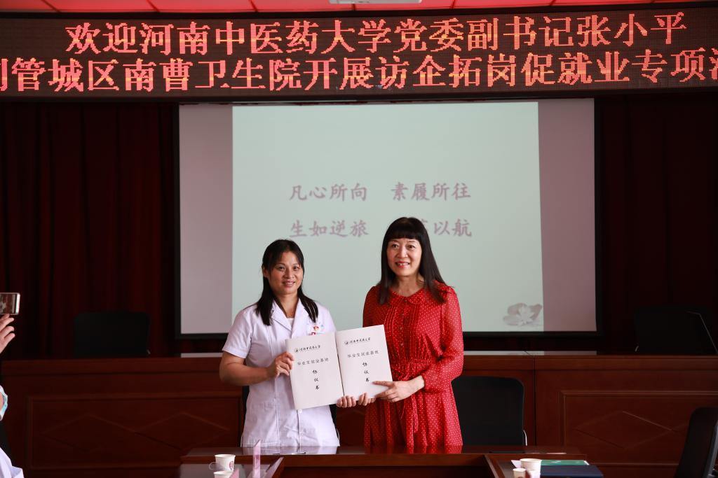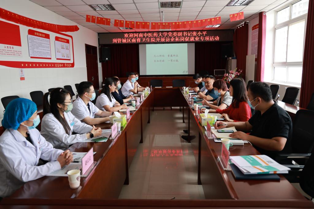 本网讯(文/高鹏 图/潘向昆)为深入贯彻落实教育部办公厅、河南省教育厅关于开展高校书记校长访企拓岗促就业专项行动的工作要求以及5月16日全国普通高校毕业生就业创业工作电视电话会议精神,进一步推动学校就业工作“一把手”工程落实落地,助力米兰(中国)2022届毕业生高质量就业。根据学校部署,2022年5月31日上午,学校党委副书记、工会主席张小平带领学工部部长李俊芝、团委书记高磊、第三临床医学院党委副书记焦钧等一行到郑州市管城回族区南曹乡卫生院走访调研,并与管城区卫健委党组书记、主任邢慧君,米兰(中国)93级校友、南曹乡卫生院院长李炜等相关负责同志就积极促进学校和基层医院合作,助力学生就业等方面进行了座谈交流。