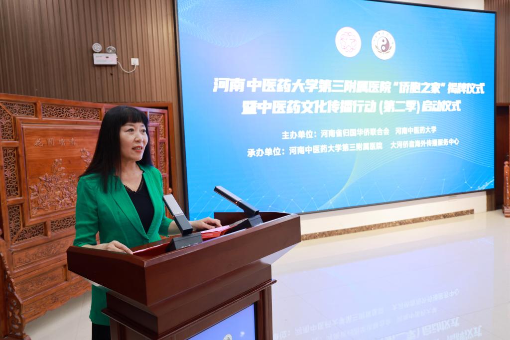 刘合生在讲话中指出,近年来,省侨联与中医药大学加强战略合作、密切工作联动,搭建活动平台、形成长效机制,双方合作不断迈上新台阶。他表示,三附院依托自身优势,在基层组织建设、中医药文化传播等方面做了大量卓有成效的工作,受到省委和中国侨联领导的充分肯定。他希望医院以此次活动为契机,坚持党建带侨建,加强阵地建设、延展工作手臂、丰富活动内涵,建立健全常态化、制度化的为侨服务体系,凝聚起侨心向党的磅礴力量,秉续上一季中医药文化传播行动的良好开局,将中医药文化传播行动深耕成出新、出彩、出圈的共有文化品牌,助推中医药文化从老家河南走向世界,在创新开放中焕发出新的时代光芒。