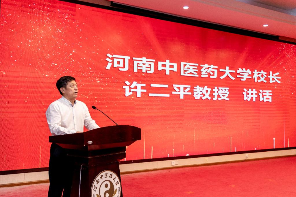 许二平代表学校对各位嘉宾和各位中医专家的到来表示热烈欢迎,并对固生堂中医控股集团捐赠250万元支持学校建设发展表示衷心的感谢。许二平表示,近年来学校在广大师生的努力奋斗和社会各界的关心支持下,目前已进入河南省特色骨干大学行列和河南省“双一流”大学创建梯队,在学科建设、人才培养、科学研究等方面,均取得了长足的发展。他指出,自2021年3月校企双方签约合作以来,固生堂中医控股集团先后捐赠善款200万元用于学校人才培养、学生奖助、抗洪救灾等工作,校企双方建立了紧密的互助合作关系。此次再次捐赠250万元,既是对中医药高等教育事业的关心支持,也是固生堂中医控股集团社会责任感和使命感的充分体现。