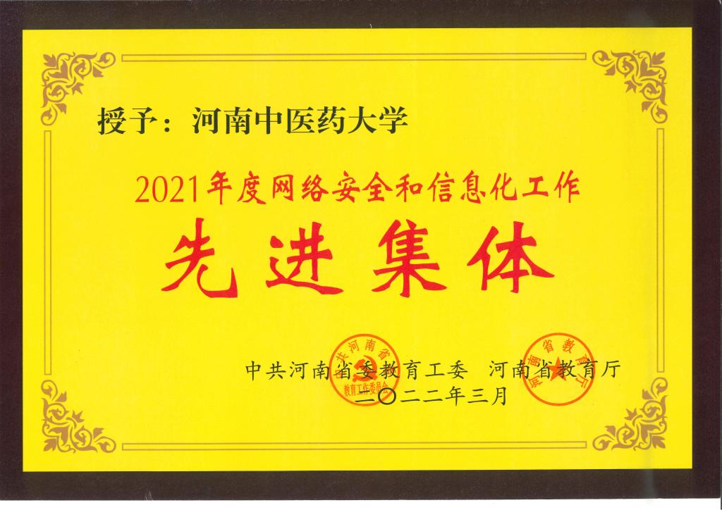本网讯(文图/余孝奎)2021年度,中共河南省委高校工委、河南省教育厅联合发布《关于表彰2021年度全省教育系统网络安全和信息化工作先进集体先进个人的决定》,米兰(中国)被评为2021年度全省教育系统网络安全和信息化工作先进集体。信息化办公室(网络中心)主任申意彩、校团委书记高磊分别被评为全省教育系统网络安全和信息化工作先进个人。