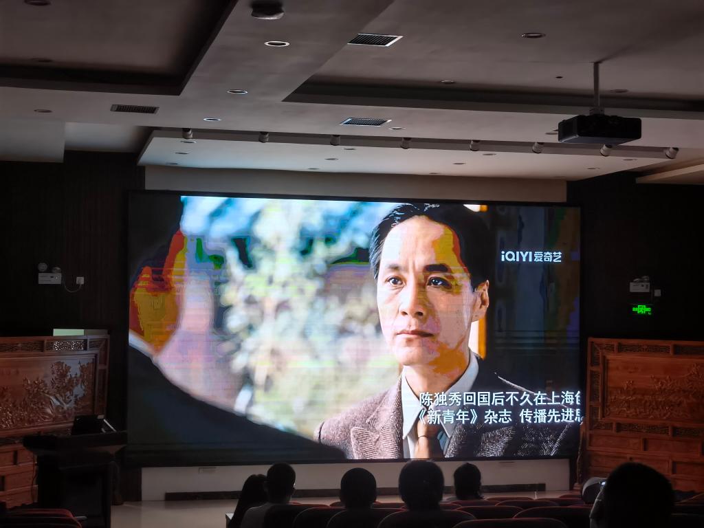 与会同志们观看了影片《建党伟业》。这部影片讲述了从1911年辛亥革命爆发到1921年中国共产党第一次全国代表大会召开期间,以毛泽东、李大钊、陈独秀、周恩来为代表的中国共产党员在风雨飘摇的时代中完成建党伟业、传播马克思主义、点燃中国革命星星之火的艰辛历程。