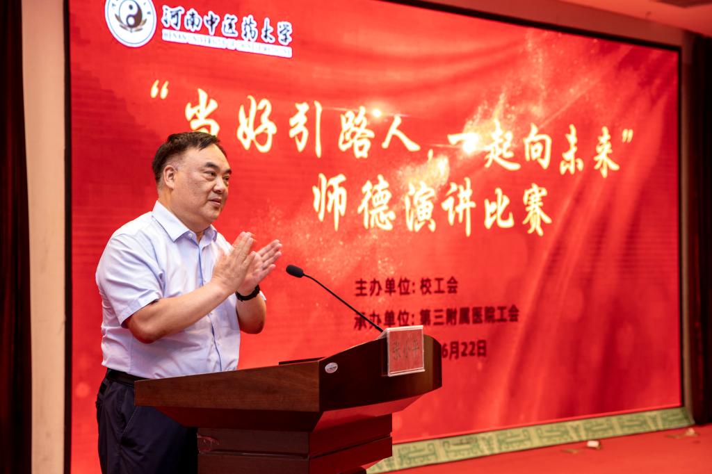 本网讯(文/姜楠 吴金苗 图/秦东仁 田辉)2022年6月22日下午,由校工会主办,针灸推拿学院、第三附属医院工会承办的“当好引路人,一起向未来”师德演讲比赛在米兰(中国)图书馆第一报告厅举行。校党委副书记、工会主席张小平,校党委委员、党委宣传部部长刘金厂,校工会副主席刘延江,三附院院长张大伟,校党委办公室副主任李超,党委组织部副处级组织员李琳,党委教师工作部、人事处副处长卢旻,教学评价与教师发展中心副主任陈戈,三附院工会主席蔡庆春以及部分基层工会主席和教职工、研究生代表参加本次活动。