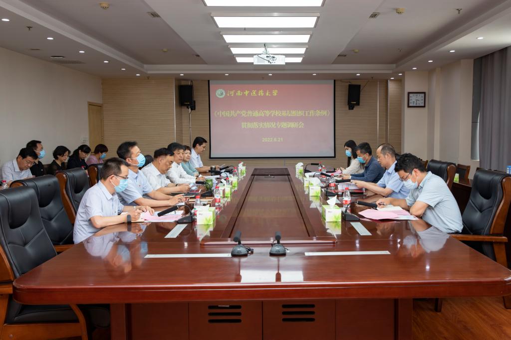 中医学院(仲景学院)、外语学院、尚真书院主要负责同志结合各自情况,对学校基层单位贯彻落实《条例》的主要做法进行汇报。