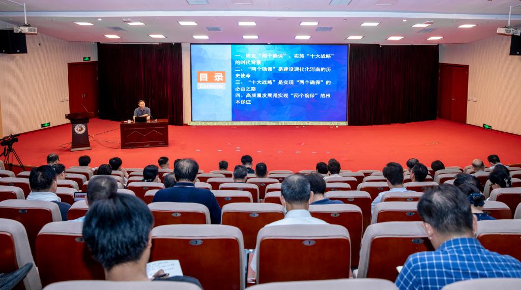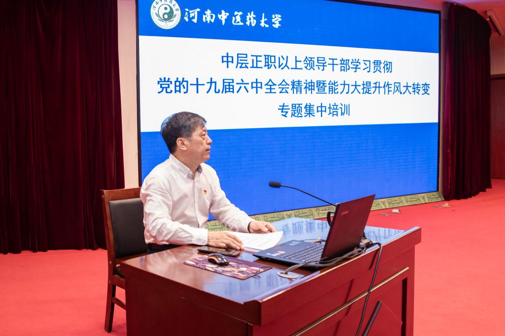本次培训采取集中学习、分组研讨、专题讲座、线上教学和自主学习等相结合的方式。培训第一讲由学校党委副书记、校长许二平做《深入学习贯彻党的十九届六中全会精神 加强能力作风建设推动高质量发展》专题报告,许二平从“深入学习领悟党的十九届六中全会精神”“中国共产党与中医药的百年传承发展”“提高能力、转变作风、主动担当作为,做新时代优秀干部”三个方面展开讲授,并要求领导干部要“对照‘能力清单’练好基本功”“对照‘问题台账’把好作风关”“对照‘目标蓝图’当好带头人”,以踏实的奋进姿态和扎实的工作成效,谱写学校高质量发展新篇章。培训还邀请了河南省社科院原院长谷建全专题讲授《以“十大战略”为切入点,深入学习领会省十一次党代会精神》,谷建全从时代背景、历史使命以及实现“十大战略”的必由之路和根本保证等方面,深刻揭示了锚定“两个确保”,实施“十大战略”的重要意义和路径安排。
