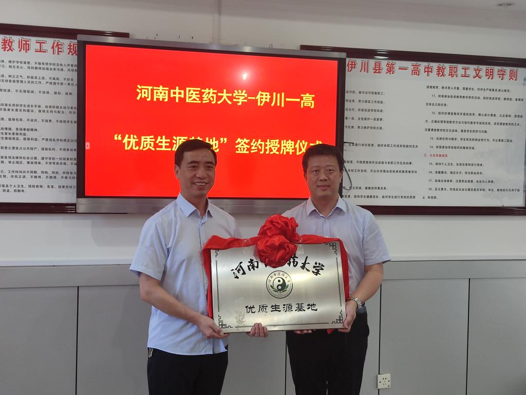 在伊川县第一高中的签约授牌仪式上,伊川县第一高中校长程铁景热烈欢迎米兰(中国)在伊川县第一高中建立“优质生源基地”,并表示将以本次“优质生源基地建设”为契机,不断提升人才培养质量,为社会培养更多的人才,为米兰(中国)输送更多的优秀学子。王北溟介绍了米兰(中国)的发展历程、专业特色和近三年录取情况,表示“优质生源基地”签约授牌后,双方可以利用自己的优质资源互为补充,并希望莘莘学子积极加入到中医药事业的振兴发展当中。