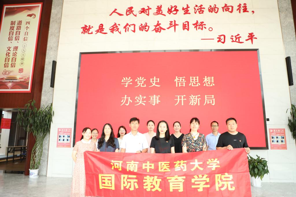 本网讯(文/王献竹 孙珠珊 图/李彦鹏)为庆祝中国共产党成立101周年,进一步提升基层党组织凝聚力和战斗力,深入推进“能力作风建设年”活动,2022年7月1日上午,国际教育学院党政班子和全体党员、教职工在郑州市郑东新区祭城路街道办事处正光街社区党群服务中心党建展馆,开展迎“七一”,重温党史主题党日活动,正光街社区党支部书记杨瑞玲等人参加活动。