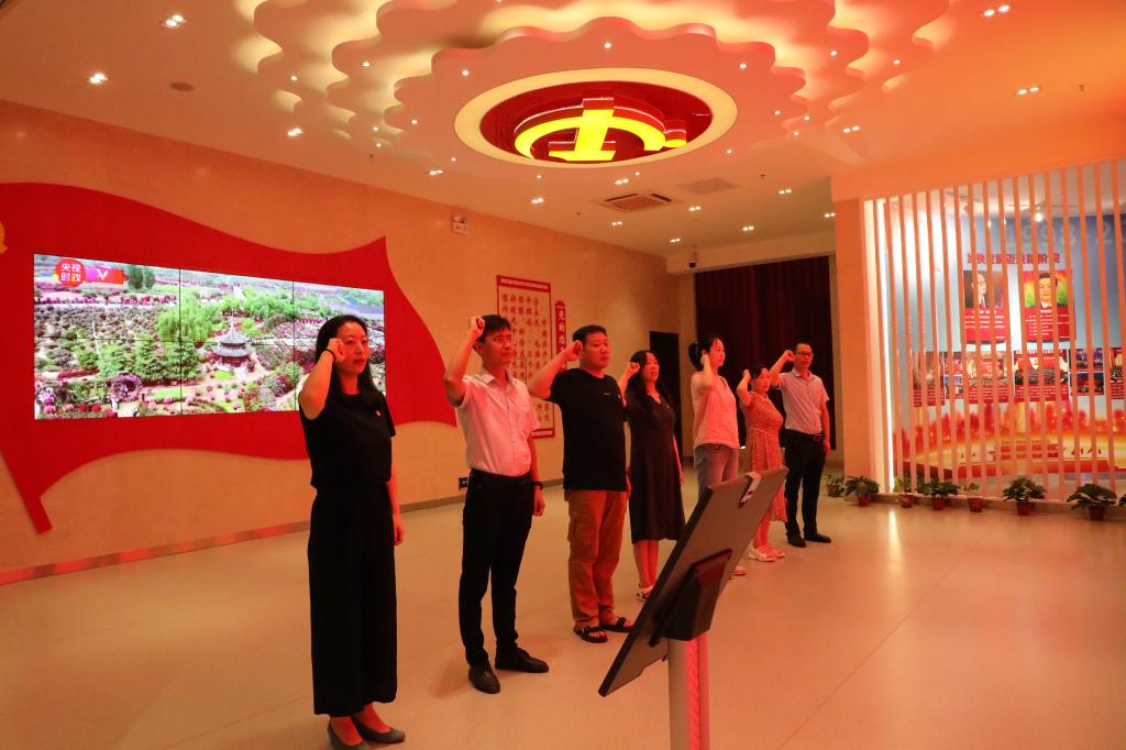 在党建展馆4楼展厅,学院党总支书记张婷婷带领全体党员回顾党的光荣历史,重温入党誓词。铿锵的誓词萦绕在耳,全体党员心潮澎湃,再次深深感受到了共产党员的责任、使命和荣耀。通过宣誓,坚定了大家立足本职岗位,勤奋工作,为党的教育事业奋斗终生的理想信念。