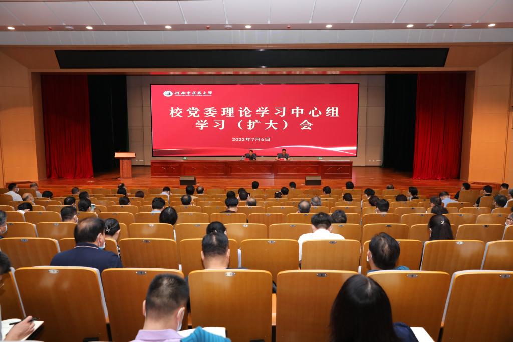 本网讯(文/刘逸青 图/秦东仁)2022年7月6日上午,校党委理论学习中心组学习(扩大)会在新校区俊学综合实验楼报告厅举行。会议邀请河南省委宣传部意识形态工作处处长王献福做意识形态工作专题讲座。校党委理论学习中心组成员和全体中层干部参加会议。会议由校党委副书记、工会主席张小平主持。