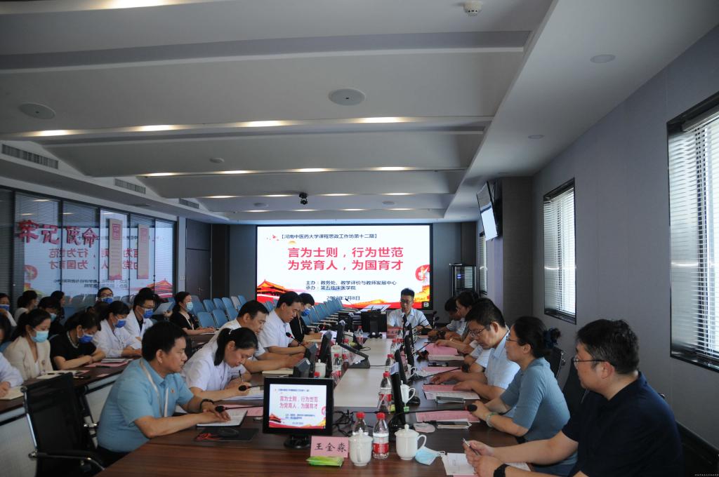 本网讯(文/谷沅芷 图/王金淼)2022年7月8日下午,由教务处、教学评价与教师发展中心主办,第五临床医学院承办的以“言为士则,行为世范,为党育人、为国育才”为主题的第十二期课程思政工作坊在文化路校区召开。校党委委员、副校长徐江雁,教务处处长禄保平、副处长李永菊、卢萍,教学评价与教师发展中心主任呼海涛、副主任陈戈,教务处课程思政中心主任王金淼,马克思主义学院指导教师赵保海副院长、陈建威博士,米兰(中国)人民医院党委副书记、院长梅伟,第五临床医学院相关院领导、教学办、课程教研室负责人等参加会议。会议由第五临床医学院副院长张思森主持。