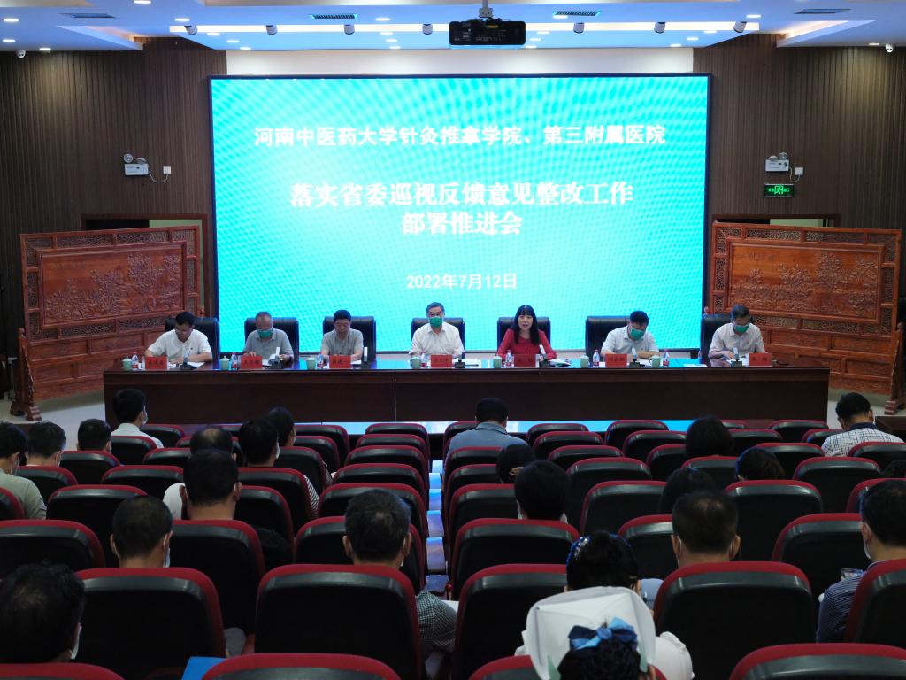 本网讯(文/郑楠楠 图/田辉) 为扎实推进省委巡视反馈意见整改工作,2022年7月12日下午,三附院在学术活动中心召开落实省委第十三巡视组巡视反馈意见整改工作部署推进会。在郑领导班子成员、各党(总)支部书记、中层正职、主持工作的副职参加会议。党委副书记焦钧主持会议。