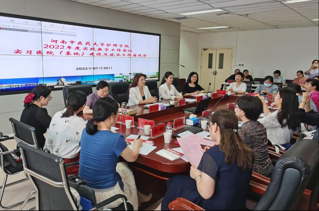 本网讯(文/王云璐 图/和青森)2022年7月30日下午,来自郑州大学第一附属医院、河南省人民医院、中山市中医院等十三家实习医院(基地)的护理部实践教学工作负责人与护理学院党政班子成员、部分老师进行了深入座谈,座谈会由副院长秦元梅主持。