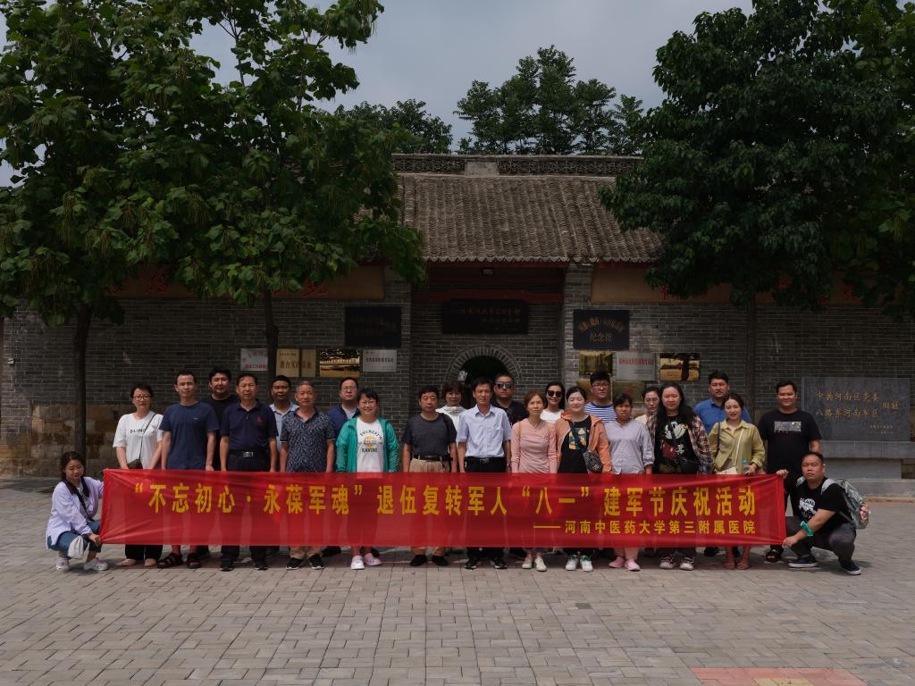 本网讯(文/吴金苗 图/田辉)为庆祝中国人民解放军建军95周年,继承和发扬革命军人的光荣传统和优良作风,全面做好双拥工作,2022年7月30日,三附院工会组织医院复转军人30多人前往河南(豫西)抗日根据地纪念馆进行参观学习,缅怀革命先烈、重温红色记忆。副院长张进一、工会主席蔡庆春参加活动。