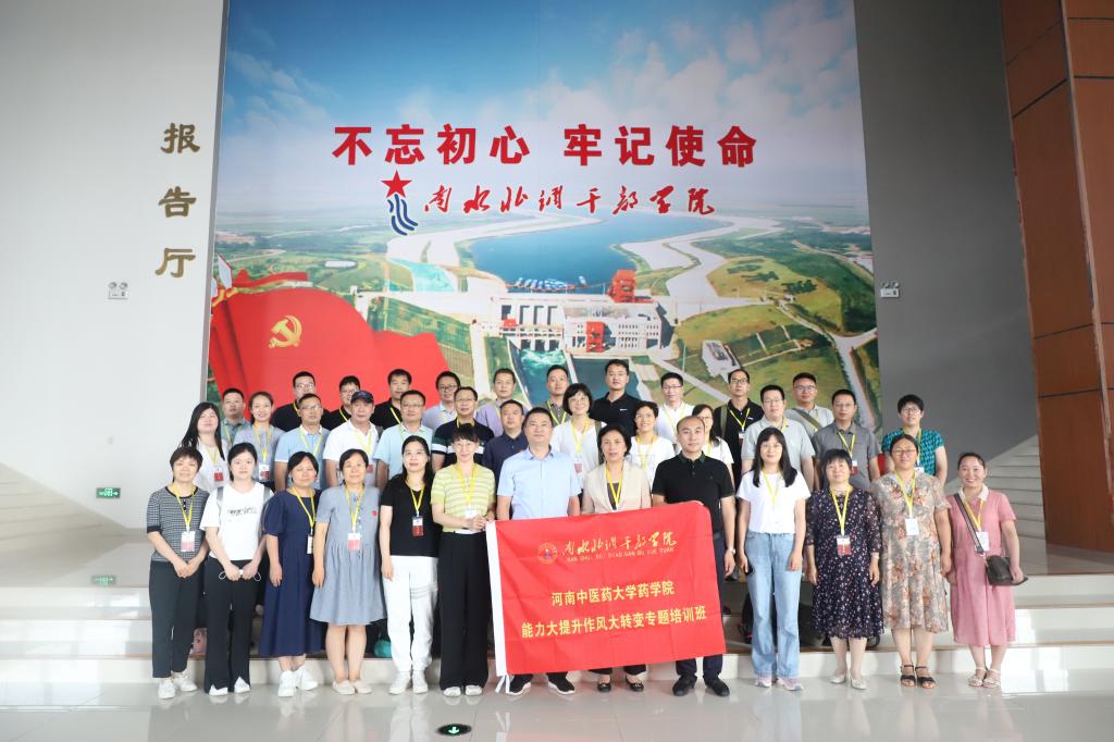 本网讯(文/王新灵 图/张飞)为持续深入开展“能力作风建设年”活动,统筹推进药学院高质量发展,2022年7月27日至30日,药学院在南水北调干部学院和仲景宛西制药股份有限公司举办“能力大提升作风大转变”专题培训班。药学院党委书记杨昕,副院长董诚明、纪宝玉,各支部书记、科室主任、新进博士以及教学科研一线教师代表一行40人参加学习培训。