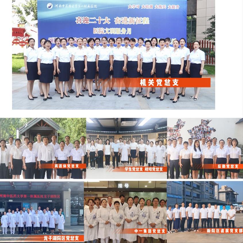 本网讯(文图/李蔚)为进一步加强和推进医院文化建设,激励全院职工锐意进取,不断创新,以饱满的工作热情迎接党的二十大胜利召开,近日,结合“能力作风建设年”活动和医院“文明服务月”活动,一附院开展“颂院训 唱院歌”接力传唱活动,全院20个党总支及儿科医学院,400余名职工积极响应参加活动。