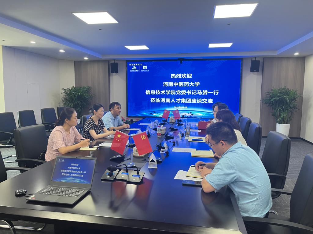 本网讯(文图/王昂)为贯彻落实教育部办公厅、河南省教育厅访企拓岗促就业相关文件精神,进一步深化校企合作,2022年8月3日上午,受校党委委员、副校长苗明三委托,信息技术学院党委书记马赟、院长许成刚,尚真书院副院长时慧等一行4人到河南人才集团走访调研。
