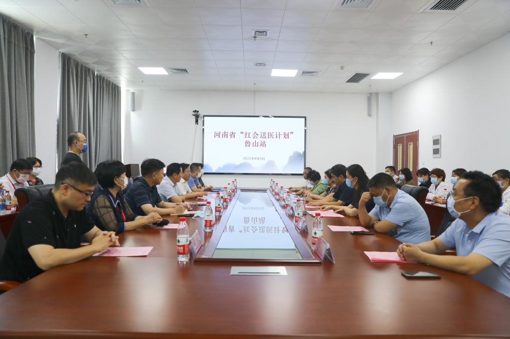 翟剑波在讲话中介绍了一附院的基本情况和近年来在医疗、教学、科研、重大疫情救治及红会送医工作等方面取得的成绩。他表示,将把红会送医与医院的各项工作有机结合,通过义诊让鲁山的父老乡亲在家门口就能享受到省级专家的优质诊疗服务;通过传帮带,不断提升基层医务人员的医疗技术水平;通过专科共建,持续加强双方合作的力度和深度,真正把“三送”服务具体措施落地落实,把“红会送医计划”做出成效,让人民群众满意,让基层医院受益,以优异的成绩迎接党的二十大胜利召开。