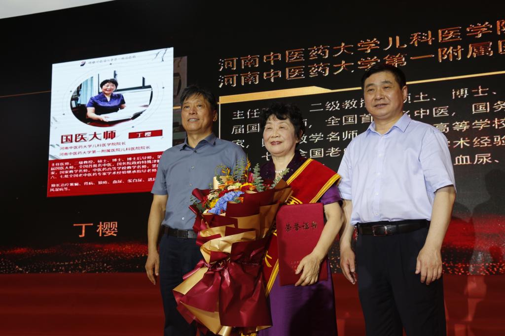 随后,卫健委领导和学校领导分别为荣获第四届“国医大师”的丁樱教授和第二届“全国名中医”的郑玉玲教授、赵文霞教授颁奖。
