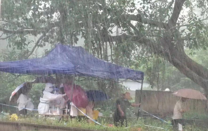 近段时间,澄迈县先遭遇“木兰”台风,后天气闷热、工作条件极为艰苦。但队员们风雨无阻,每天一早就赶到采样现场投入工作,晚上很晚才能回到驻地休息,但他们始终牢守工作纪律,坚持规范为先,充分保证采样质量,并且为老人、病人等特殊群体提供细致周到的服务。
