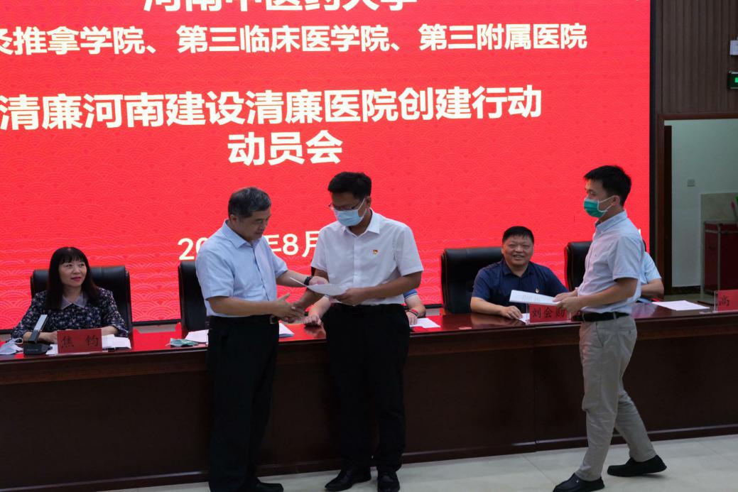 会上,刘会勋传达了医院《清廉河南建设清廉医院创建行动工作方案》文件精神并进行安排部署;副院长王志超对省医保局、省卫健委关于药品耗材集采专项检查情况进行了通报;医疗保险科、物价办、病案室负责人就做好廉洁医院创建行动各项工作进行表态发言;相关责任部门及业务科室代表向院长张大伟递交清廉医院创建行动承诺书,层层压实责任,确保清廉医院创建行动取得实效。