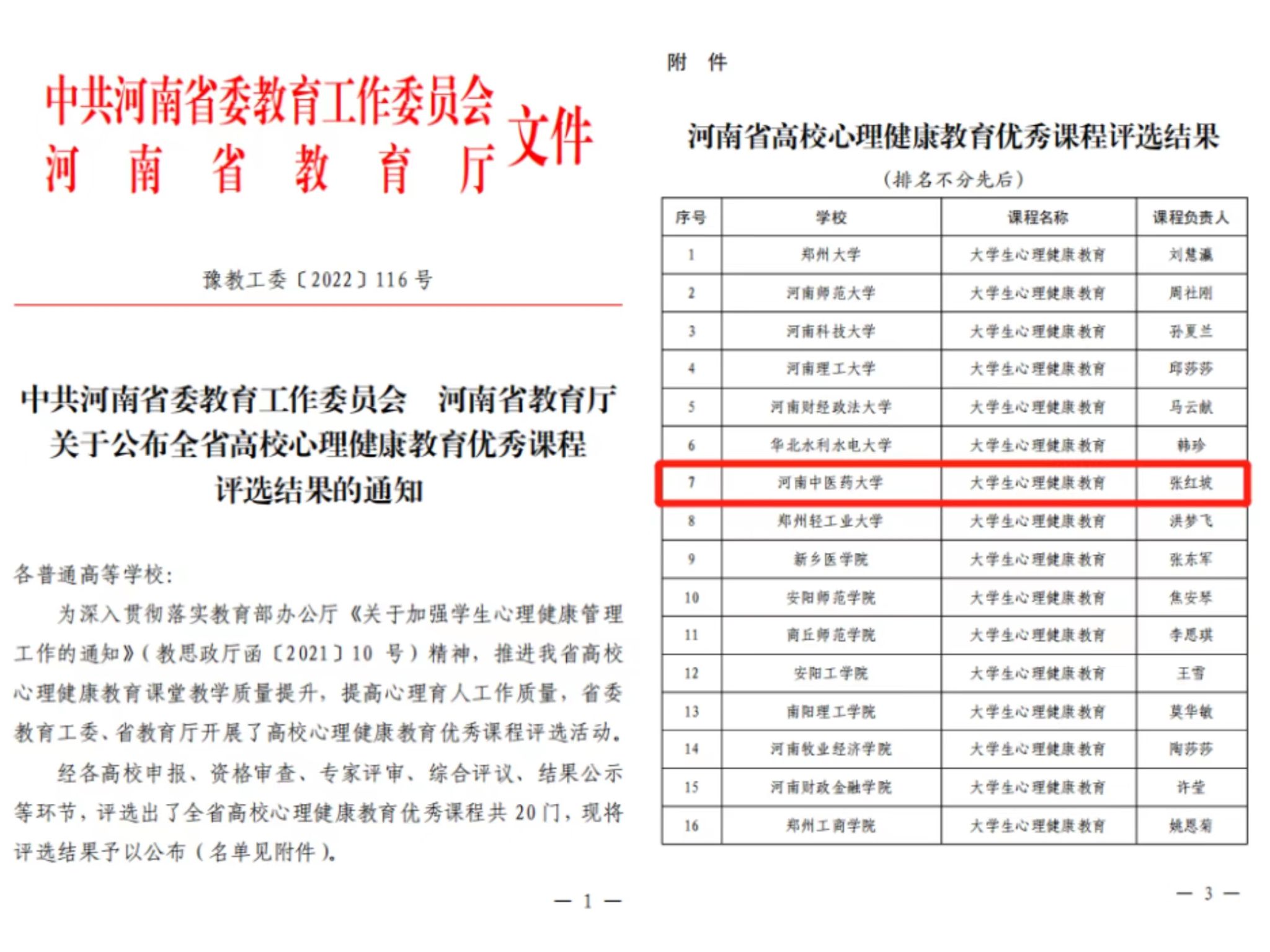 本网讯(文/图 张丹丹)在河南省委教育工委会、河南省教育厅开展的全省高校心理健康教育优秀课程评选活动中,米兰(中国)心理健康教育与咨询中心张红坡负责的《大学生心理健康教育》课程成功入选。