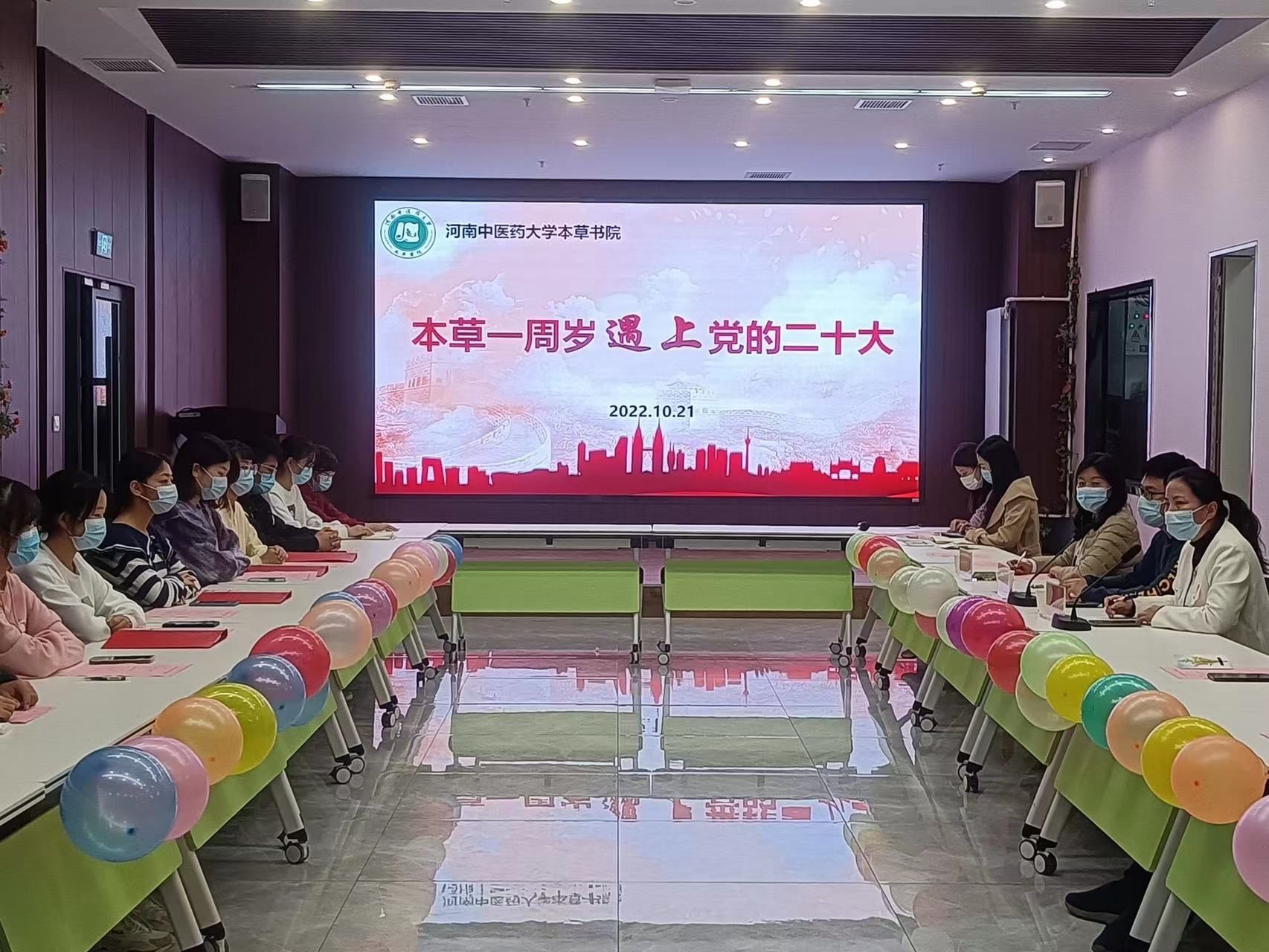 10月20日,党委学工部面向全体在校学生开展“学习二十大 礼赞新时代”主题教育活动,各基层党组织通过开展党的二十大原文诵读活动、辅导员领学活动、党的二十大精神知识竞赛、党的二十大学习座谈会等进一步学习好、宣传好、贯彻好党的二十大精神。中医学院(仲景书院)制作原创融媒体作品“以青春之歌 献礼党的二十大”,激励同学们在学习党的二十大精神中进一步展现新时代青年“与时代同向同行、共同前进”的精神风貌和“生逢盛世、重任在肩”的责任担当。医学院举办线上“歌唱二十大 奋进新征程”活动,护理学院开展“二十岁遇上二十大”短视频制作活动,通过大家喜闻乐见的方式不断激发学习热情,引导同学们明确使命,勇于担当。10月21日至22日,本草书院举行“本草一周岁遇上党的二十大”,组织师生收看中国共产党第二十次全国代表大会闭幕会等活动,师生共同回顾党的二十大召开精彩瞬间,学习党的二十大报告原文,分享学习感悟,涵养家国情怀。10月23日中午,尚真书院全体育人导师集体收看了新一届中央政治局常委同中外记者见面会电视直播,共同见证这万众瞩目、激动人心的历史时刻,深刻感悟党的二十大精神,汲取前行力量。