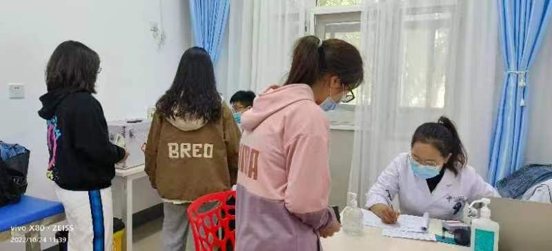 本网讯(文图/ 秦中朋)近期,郑州市新一轮疫情形势严峻复杂,学校紧急实行全封闭静态管理。在校园静态管理、医护人员紧缺的情况下,校内同学们如何看病就医成为校领导最挂念的事。本着想学生所想、急学生所急、解学生难题的出发点,在校领导的统一指导下,校疫情防控办、研工部和学工部等相关部门立即召开工作协调会,为校园内学生看病就医制定方案。2022年10月24日,一支由有医护工作经历的研究生组建的医务队在龙子湖校区简易医务室顺利开诊,为同学们就医提供了保障。