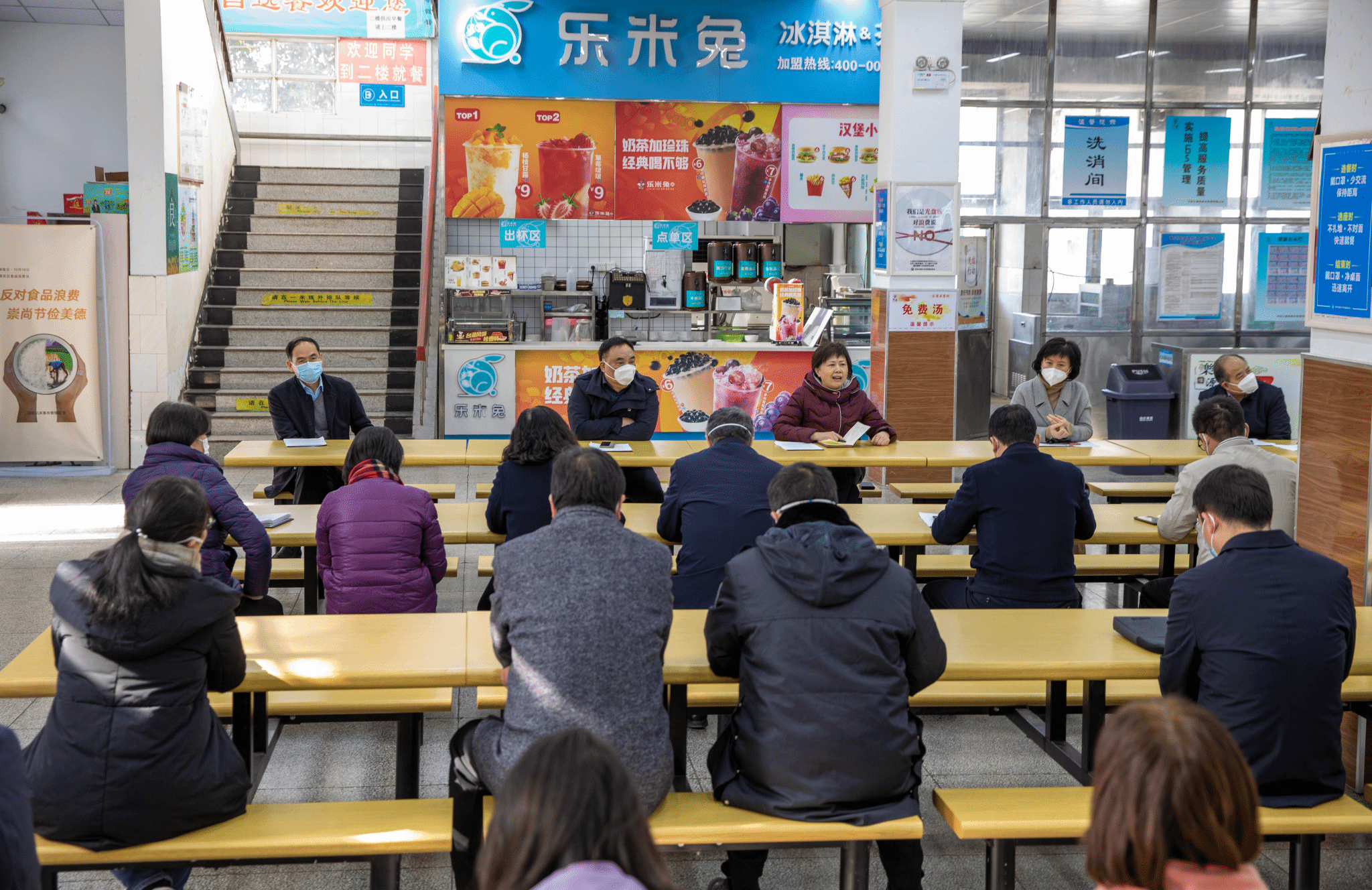 行至餐厅,李小芳查看了饮食保障情况、卫生管理情况等,并召开现场办公会。东明办、学工部、研工部、三附院、后勤服务中心、保卫处、东明校区防控专班、校疫情防控办主要负责人先后就疫情防控工作、近期重点工作、存在问题等进行汇报。