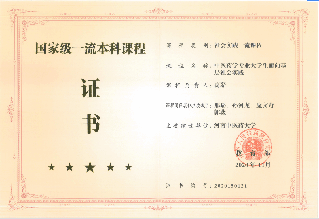 《中医药学专业大学生面向基层社会实践》课程获批国家首批社会实践一流金课