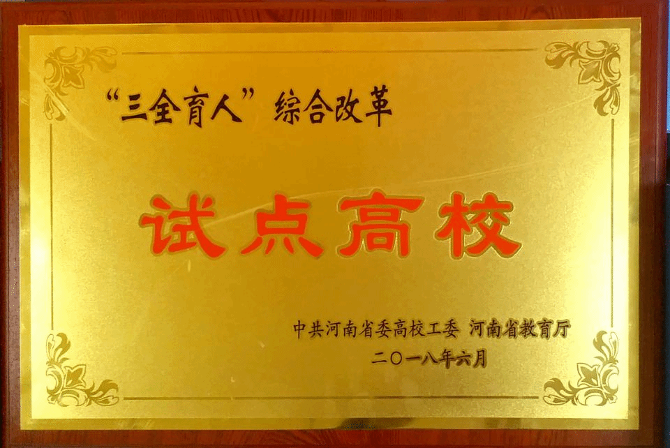 2018年,学校成为首批河南省“三全育人”综合改革试点高校