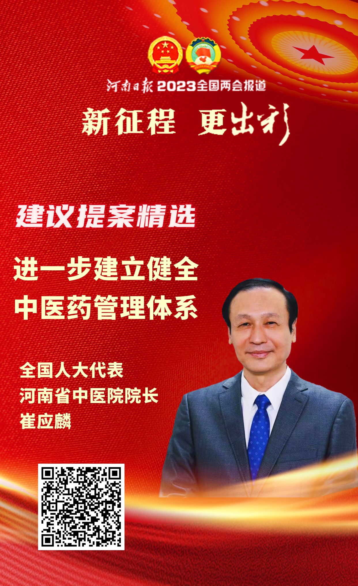 “党的十八大以来,中医药事业高质量发展迎来了大好时机,当前需要进一步建立健全中医药管理体系,为中医药传承创新提供更为坚强的保障。”全国人大代表、河南省中医院院长崔应麟认为。