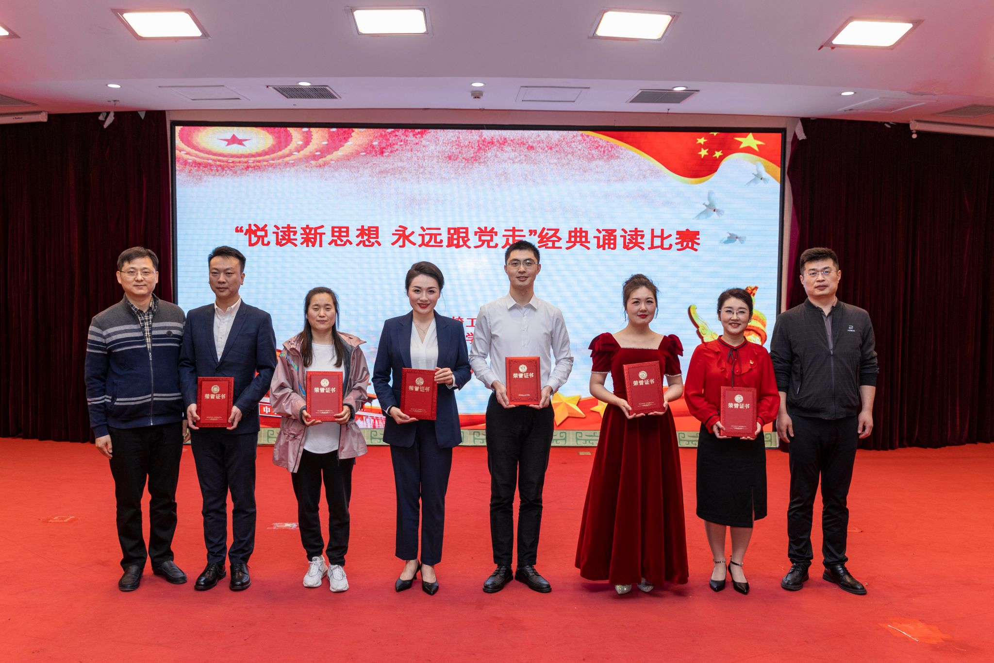 校工会女工委副主任常瑞宣布比赛结果,外语学院《放飞中国梦》、管理学院《读中国》、二附院《在中国大地上报道》获一等奖;三附院《江山就是人民,人民就是江山》、医学院《青春中国》、信息技术学院《我骄傲,我是中国人》等7部作品获二等奖;尚真书院《百年征程,领航中国》、本草书院《党的二十大之歌》、图书馆《百年礼赞》等10部作品获三等奖。