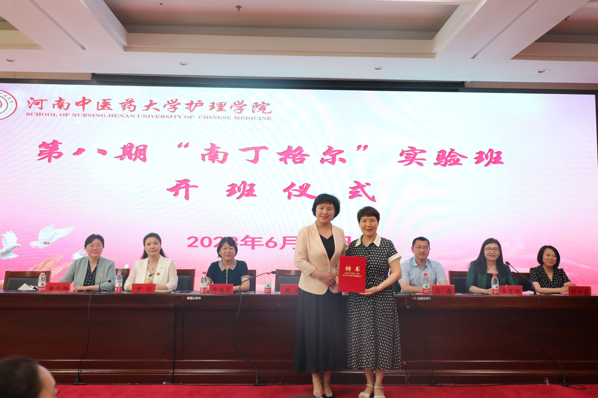 学院副院长秦元梅、副院长刘玲霞先后宣读第八期“南丁格尔”实验班学员名单和导师团名单;学员代表向天悦作发言;宋静对新一期学员的发展提出建议。