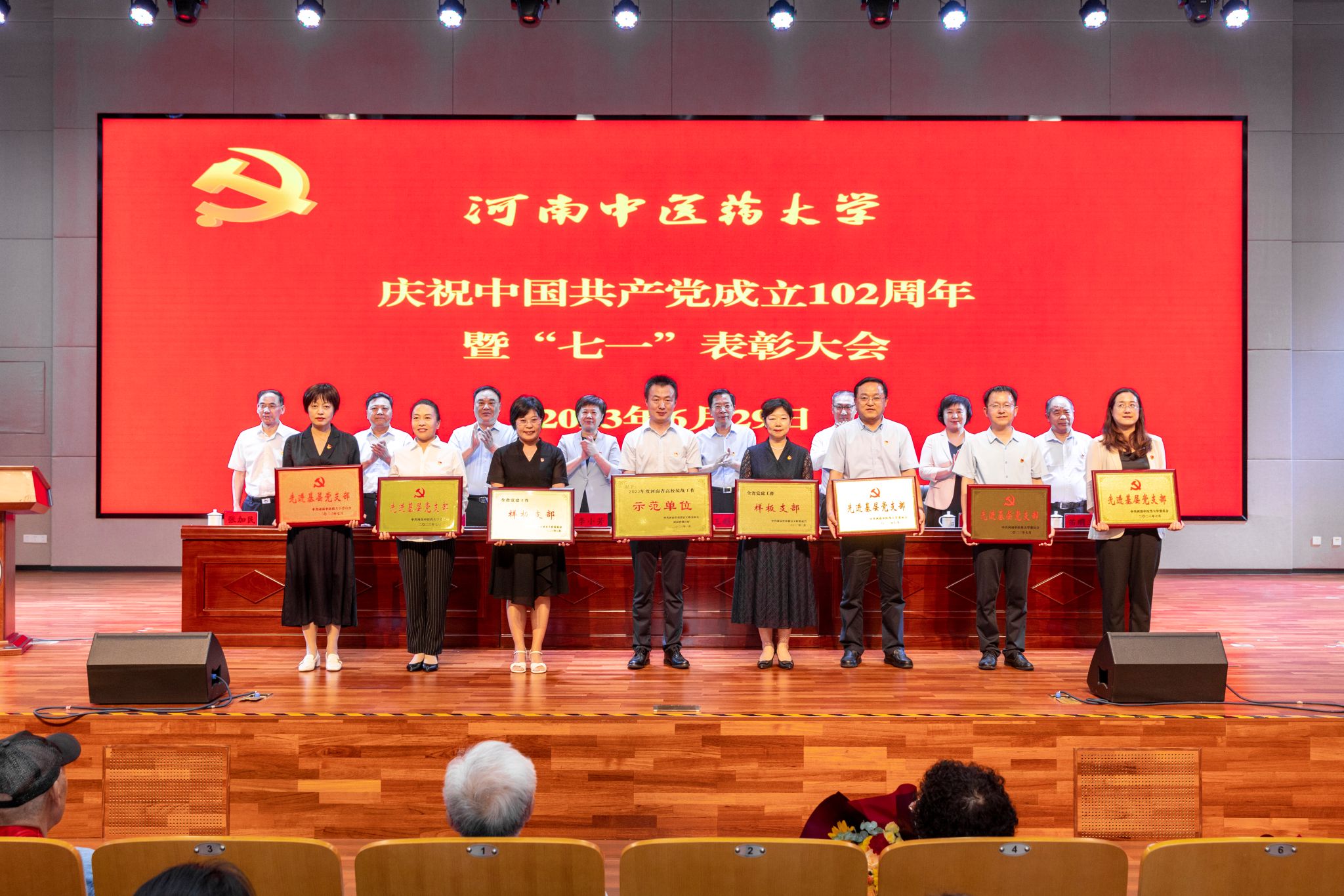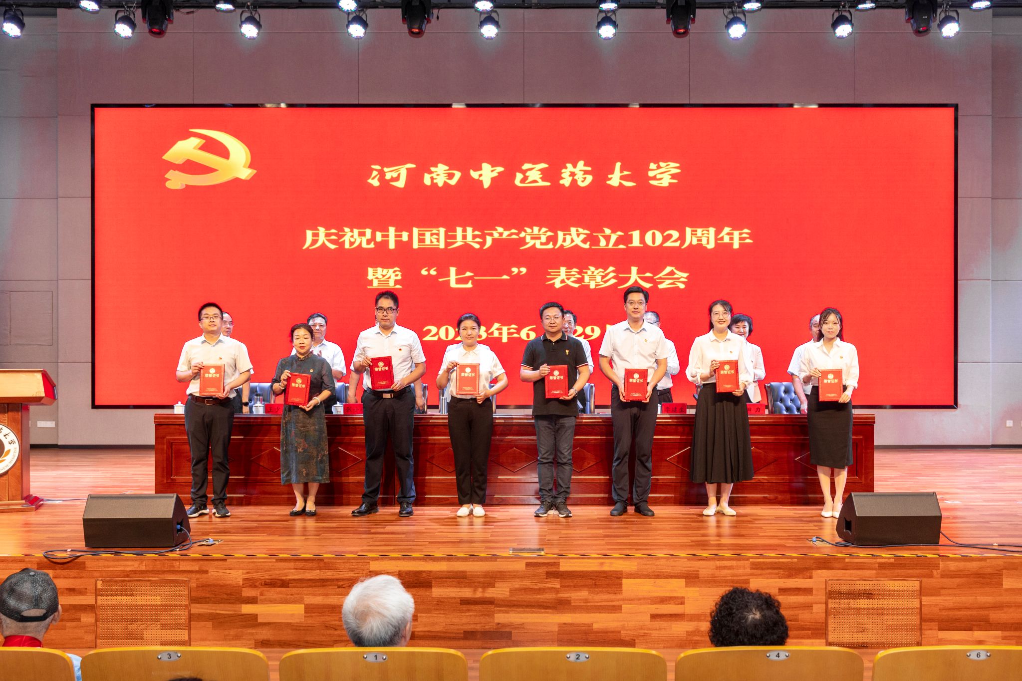 “河南省高等学校优秀共产党员”“优秀党务工作者”、全省高校“大学生党员标兵”上台领奖