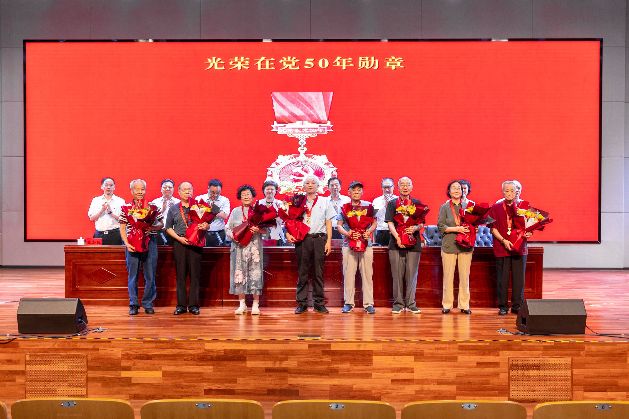 “光荣在党50年”纪念章老党员代表接授奖章现场