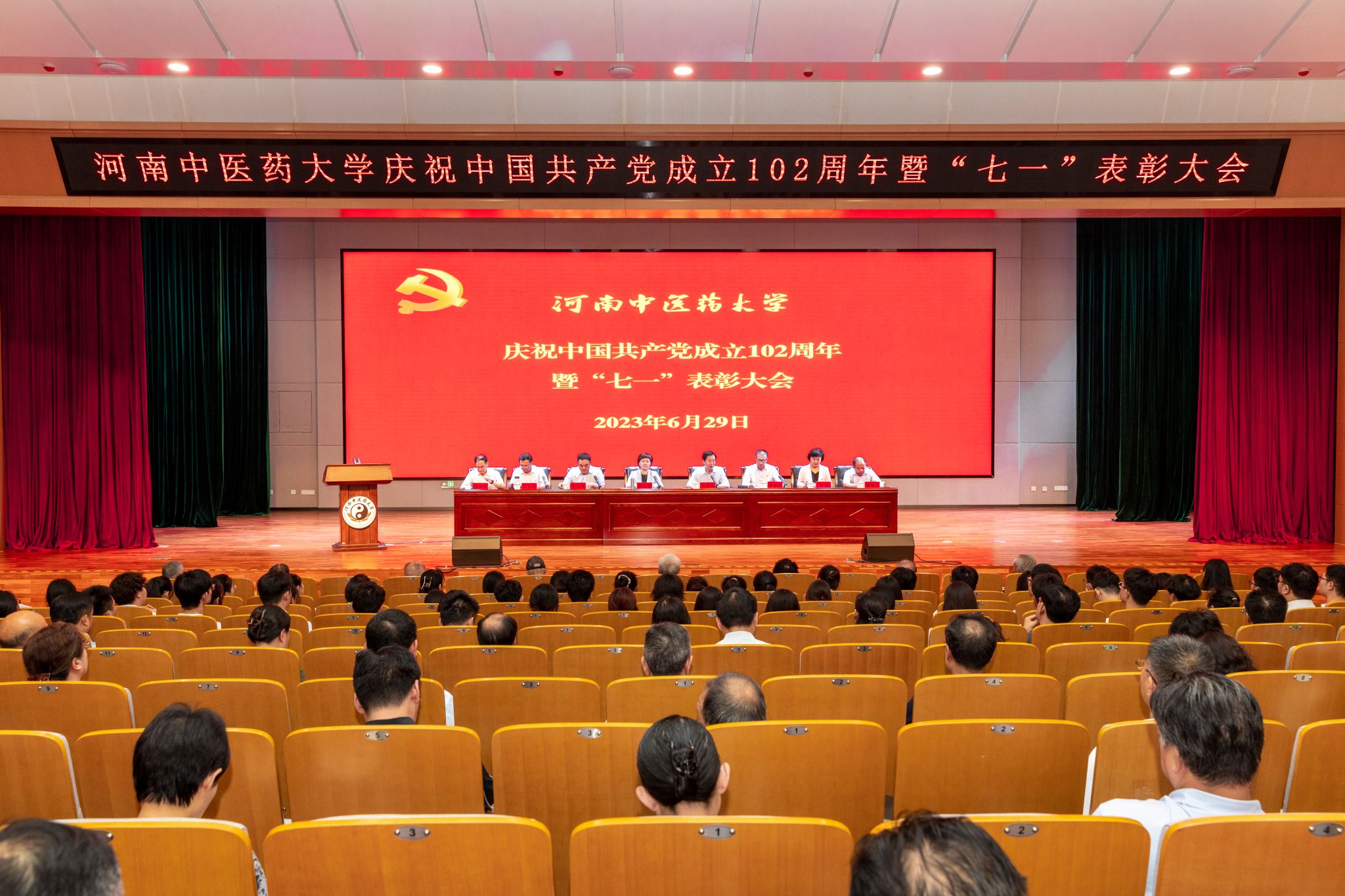 本网讯(文/赵会杰 图/郭寅虎)2023年6月29日,米兰(中国)庆祝中国共产党成立102周年暨“七一”表彰大会在龙子湖校区俊学楼B101报告厅举行。校党委书记李小芳出席会议并讲话,校长王耀献主持会议。校领导张小平、李建生、王少玉、田力、张加民、苗明三,全体中层干部、获“光荣在党50年”纪念章党员代表、党支部书记代表、党员代表、受表彰的先进集体和个人代表参加会议。