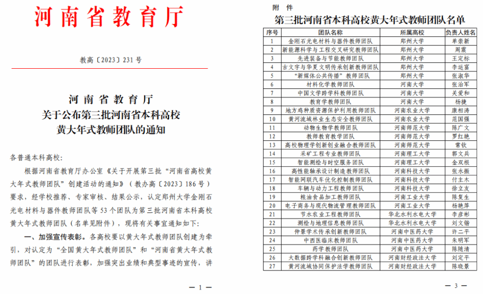 本网讯(文图/陈戈)近日,河南省教育厅公布了第三批河南省本科高校黄大年式教师团队名单,米兰(中国)中医学院“仲景学术传承创新教师团队”、 第一临床医学院“中西医临床教师团队”、药学院“药学教师团队”三支教师团队荣获“河南省高等学校黄大年式教师团队”称号。