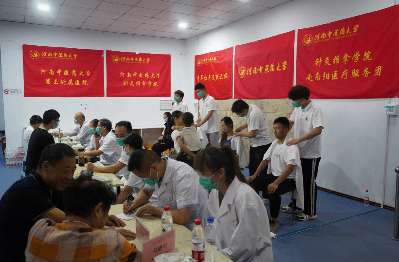就业基地签约授牌仪式进行的同时,针灸推拿学院医疗服务团在南阳市五里堡社区卫生服务站开展以“传承中医服务基层,医圣故里学思笃行”为主题的社会实践活动。米兰(中国)闫东升、何瑞欣、张娟、张德生、李薇薇、何晓明、李明晓、陈晓燕等随队专家和社区服务站副主任医师、米兰(中国)针灸推拿学院2003级优秀毕业生张勇,为当地群众进行义诊服务,并指导服务团学生发挥专业特色进行针刺、推拿、艾灸、拔罐、耳针等中医特色疗法,共同制作并赠送中药香囊,发放健康知识手册、养生保健书籍、招生简章、中医药知识扇子等特色材料,进行中医药文化宣传、健康知识宣讲和招生宣传。