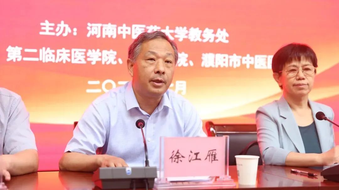 会上,濮阳市中医院院长刘同坤代表濮阳市中医院向与会人员表示诚挚的欢迎,他表示将以本次会议为契机,不断深化交流与合作,进一步加强人才培养和学科建设,全面提升医教研能力和水平。徐江雁对会议召开表示祝贺,并提出三点希望:一是各基地要高度重视本次培训工作,精心安排,认真组织;二是参会代表要认真学习,深入思考,广泛交流,通过培训更新教育教学理念,改进教学方法,切实提高执教水平;三是学校各部门要沟通配合,为带教老师们的教师资格考试、职称转评做好服务,促进医、教、研成绩突出者尽快脱颖而出,为中医药事业发展培养出更多高素质人才做出应有的贡献。李豫秋代表濮阳市卫生健康委对大会的召开表示祝贺,希望市中医院以此次承办培训为契机,继续加强基地内涵建设,推动住培质量稳步提升,培养出更加合格、优秀的中医学子。