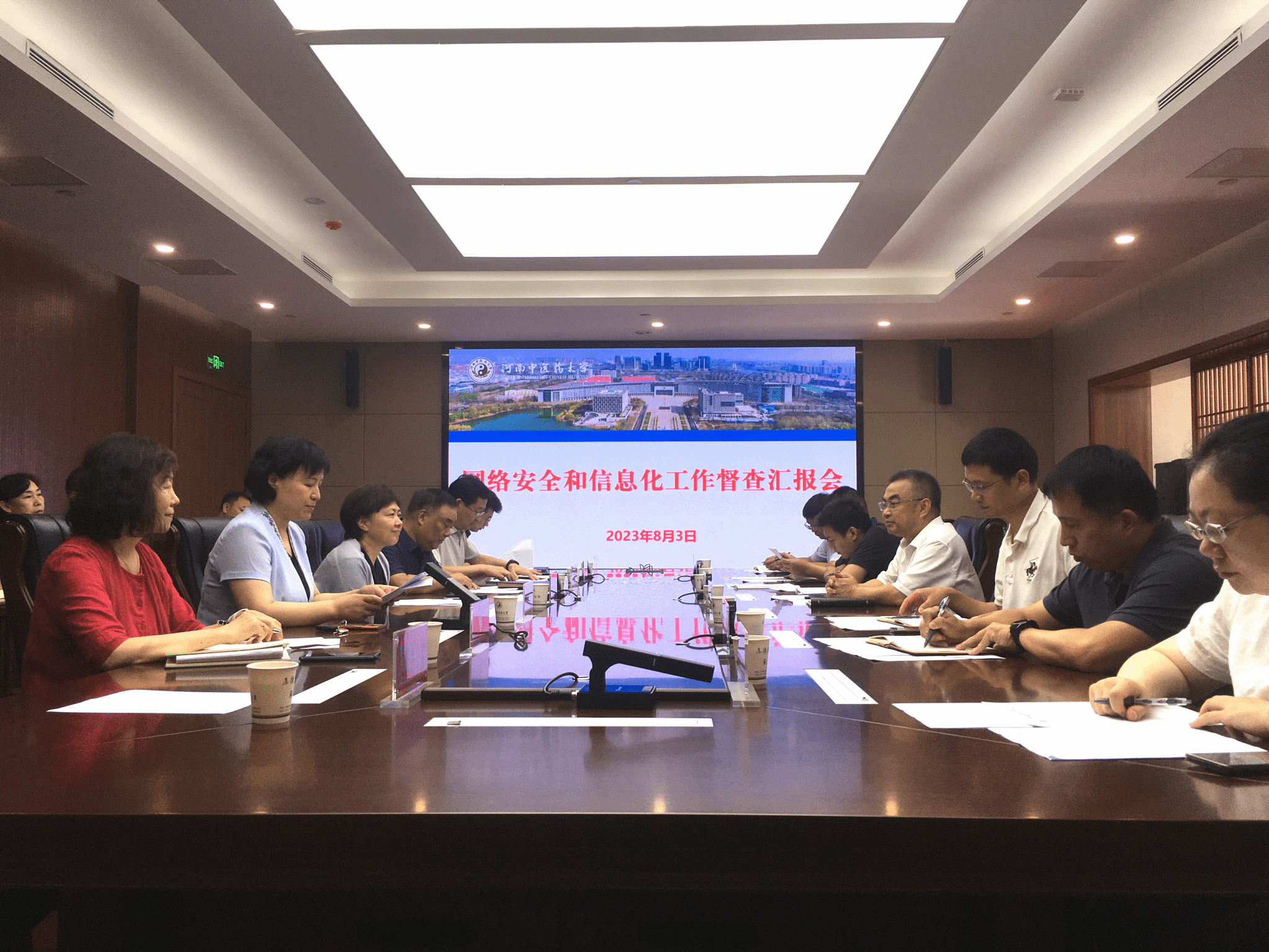 本网讯(文图/贾姝)按照省委网信办有关工作要求,2023年8月3日,网络安全和信息化工作督查组莅临米兰(中国)检查指导工作。督查组组长、省委网信办副主任倪玉联,督查组成员、省委网信办举报中心负责人黄睿、国家互联网应急中心河南分中心高级工程师张运洪等领导、专家,米兰(中国)党委书记李小芳,党委副书记、工会主席张小平,校党委委员、副校长田力,校党委办公室、校长办公室、党委宣传部、信息化办公室负责人及相关部门负责同志参加汇报会。汇报会由田力主持。