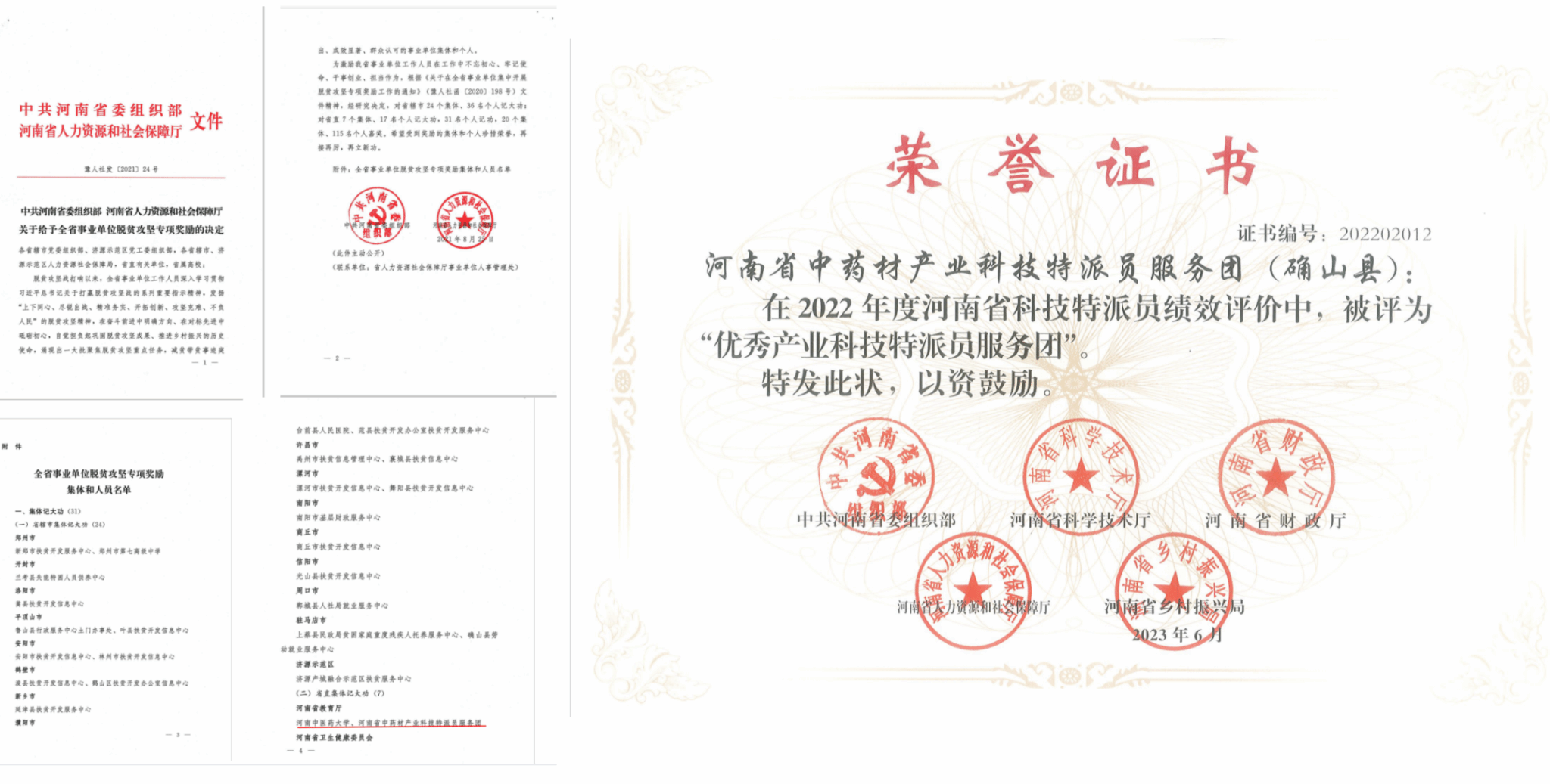 本网讯(文/图 李青雅)近日,在由中共河南省委组织部、河南省科学技术厅组织的河南省科技特派员绩效评价中,米兰(中国)派出的“河南省中药材产业科技特派员服务团”获得优秀等次,这是继2021年被中共河南省委组织部、河南省人力资源和社会保障厅授予“记大功”表彰以来获得的又一殊荣。