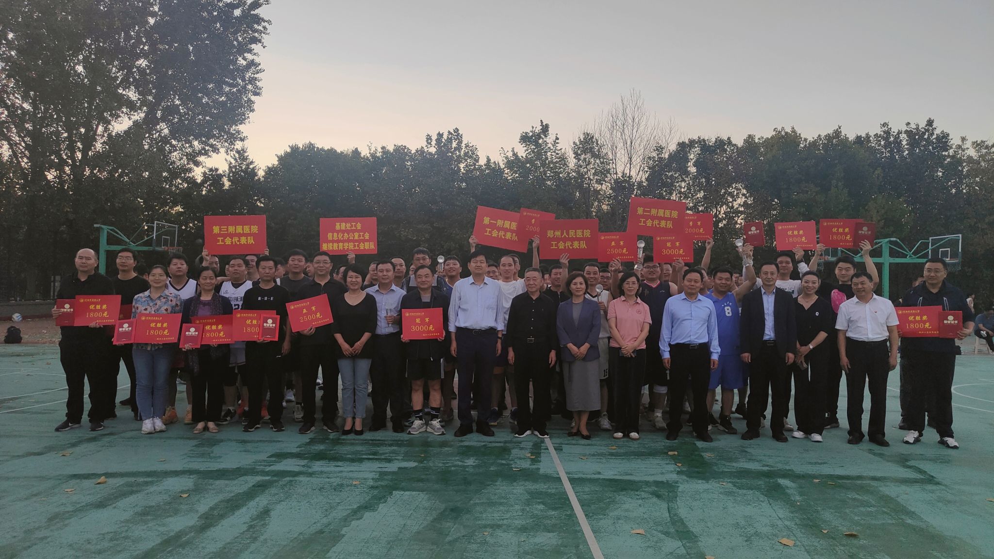 经过10天18场对阵赛的激烈角逐,最终机关党群、行政、研工部研究生院工会联队获得本次比赛A组冠军,基建处、信息化办公室、继续教育学院工会联队获得亚军,中医学院(仲景学院)工会获得季军;二附院工会获得B组冠军,郑州人民医院工会获得亚军,一附院工会获得季军;后勤服务中心工会,武装部保卫处、体育学院工会联队,信息技术学院工会等10支参赛队获得优胜奖。颁奖仪式由三附院工会主席蔡庆春主持,副校长彭新为获奖选手颁奖。