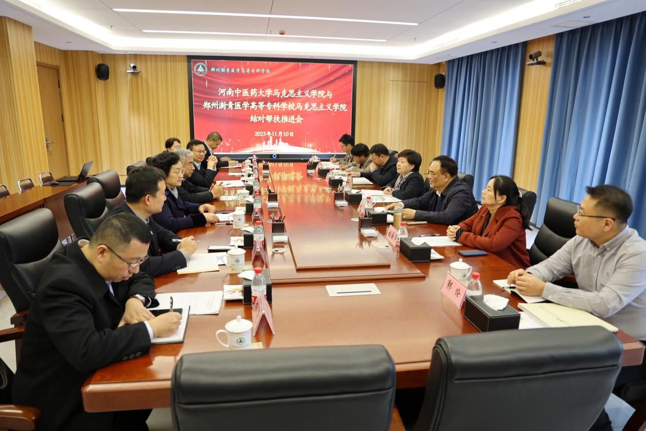郑州澍青医学高等专科学校马克思主义学院院长胡彬汇报了自2021年12月签订结对帮扶协议以来,本校马克思主义学院建设取得的一系列突出成果。米兰(中国)马克思主义学院院长张会萍汇报了今后继续推进两校马克思主义学院结对帮扶建设的工作思路。