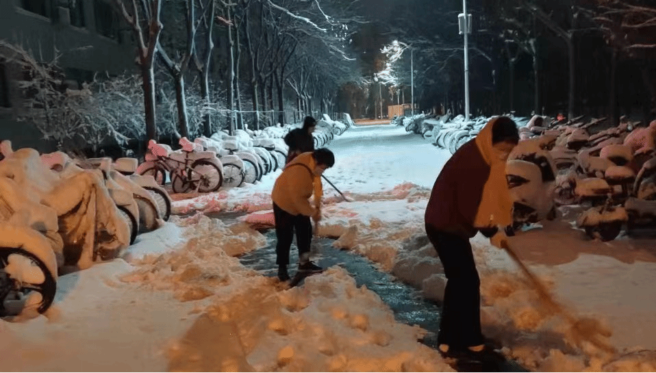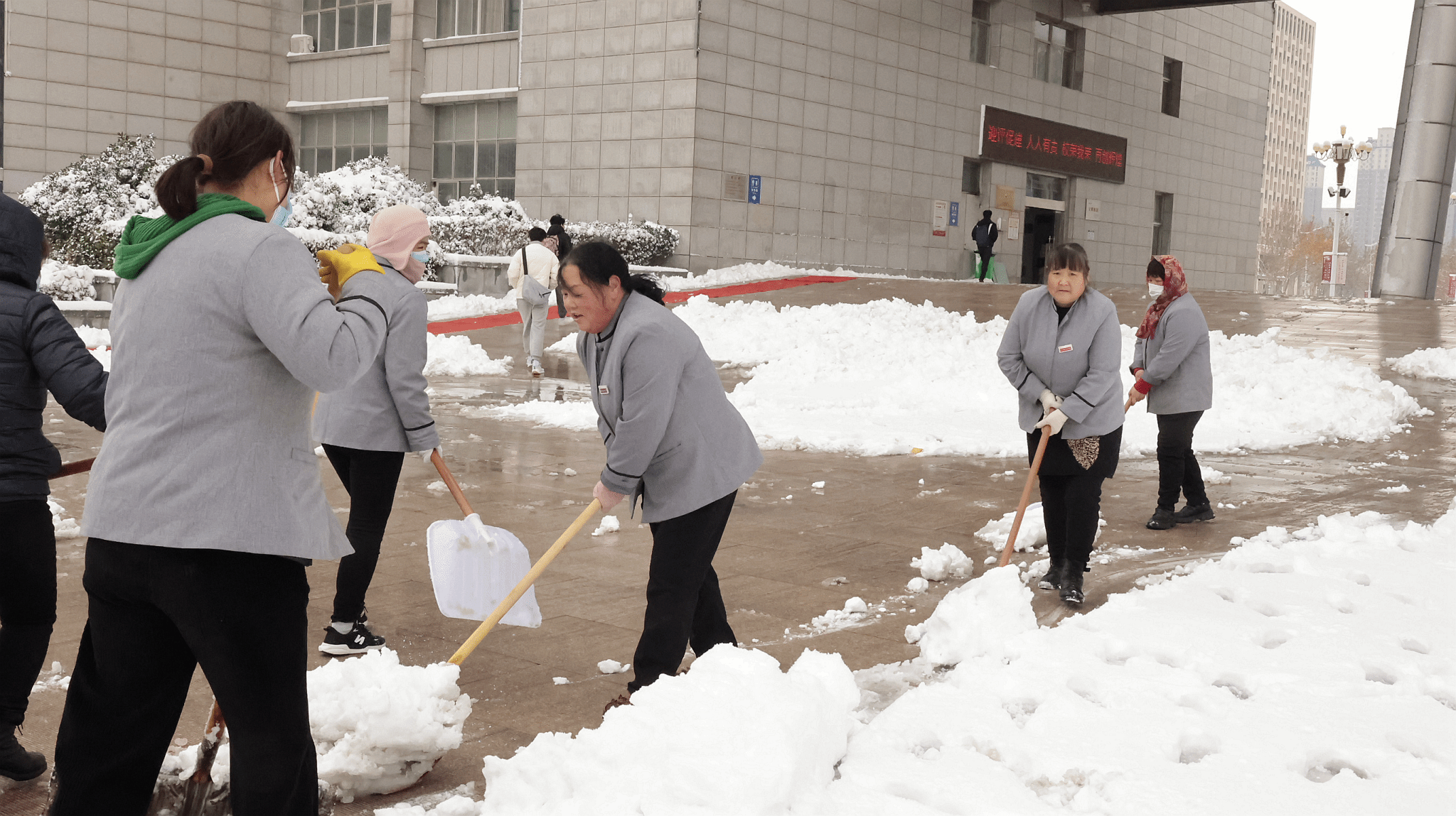 一片洁白的晶莹美景中,人头攒动、铁铲声声,处处都是奋力除雪的身影。学校教职员工斗志昂扬、团结合作、分工明确,各种工具齐上阵,扫、铲、推相互协作。经过上午和下午热火朝天的劳动,俊学综合实验楼、教学实验楼前通往教室、食堂、操场、校门路上的皑皑积雪被清除,保证了校园主要活动场地和通道的畅通,为全校师生的出行提供了方便。