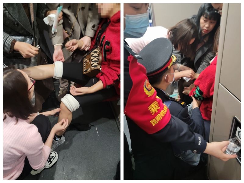 “你好,同志,你能听到我说话吗?”臧宾宾在旁大声呼唤,该乘客意识清楚能给予表示但极度痛苦,无法睁眼。