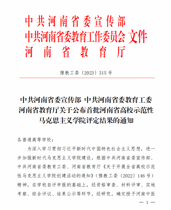 本网讯(文/图 陈建威)近日,中共河南省委宣传部、中共河南省委教育工委、河南省教育厅联合印发《关于公布首批河南省高校示范性马克思主义学院评定结果的通知》,米兰(中国)马克思主义学院成功入选首批河南省高校示范性马克思主义学院。