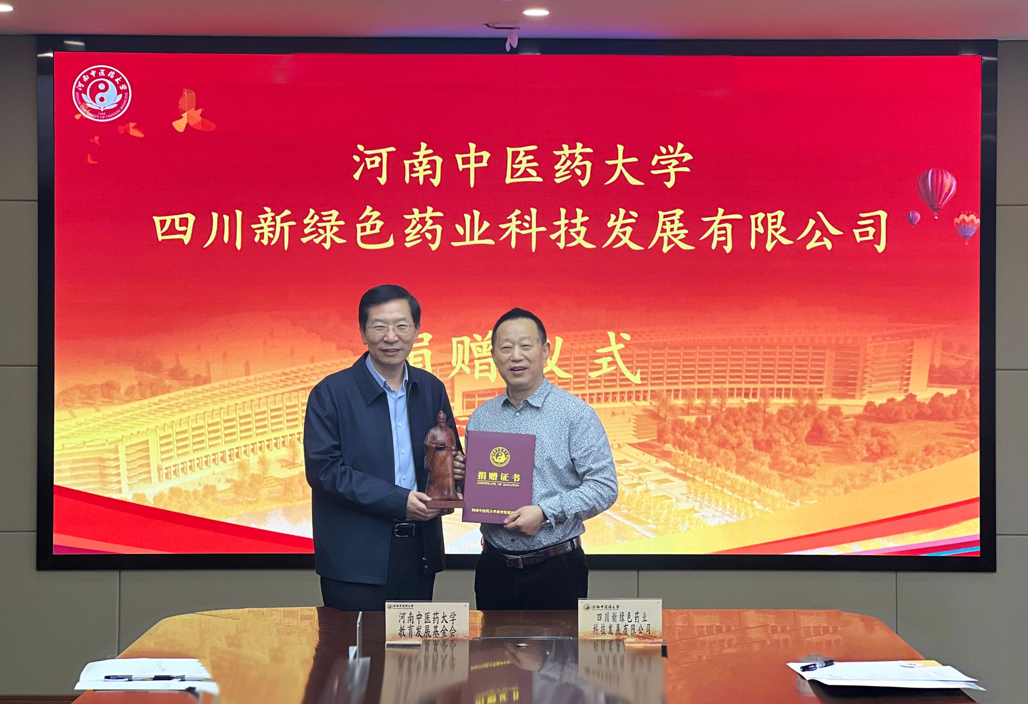 颁发捐赠证书