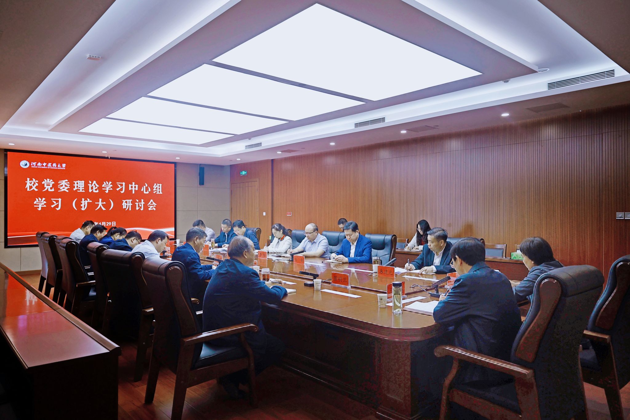 校党委理论学习中心组学习(扩大)研讨会现场